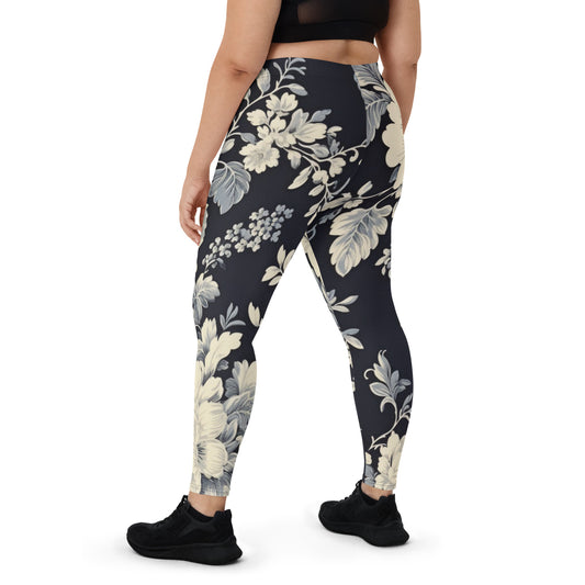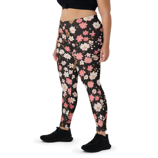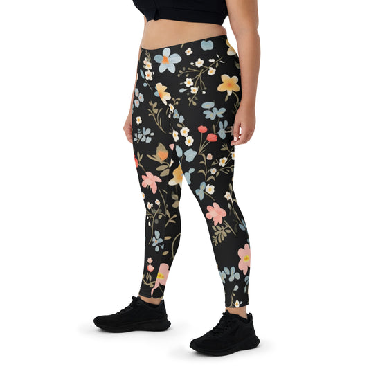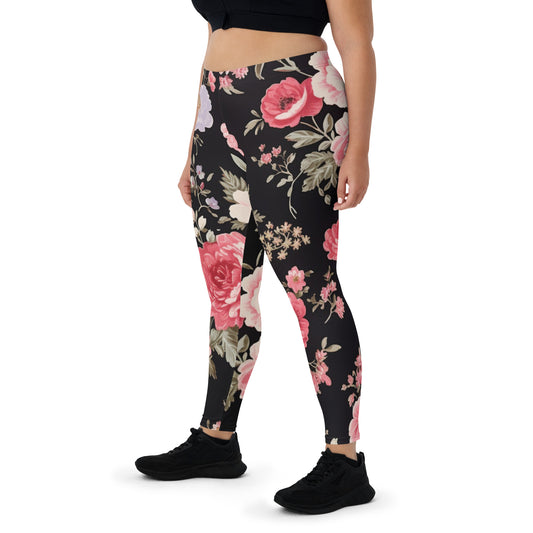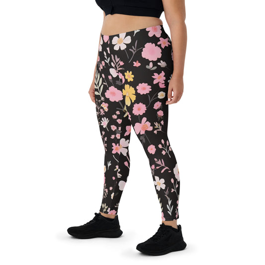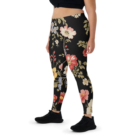Schwarze Leggings mit großem Blumenmuster
