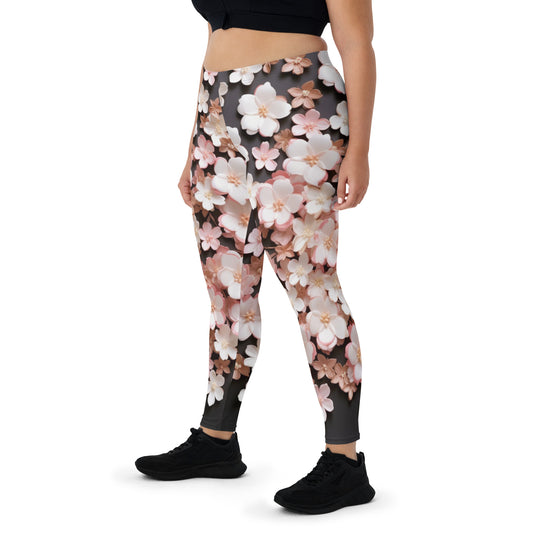 Weiße rosa Blumendruck Damen Leggings