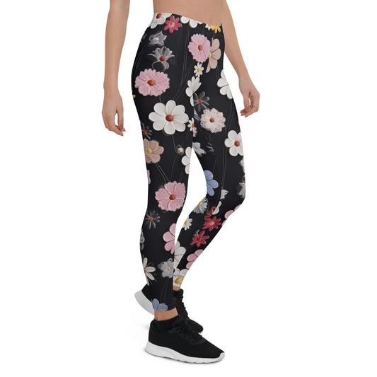Schwarze Leggings mit Blumenmuster