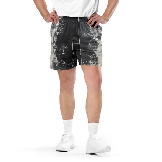 Pantalones cortos de malla unisex con mancha de tinta negra y blanca artística