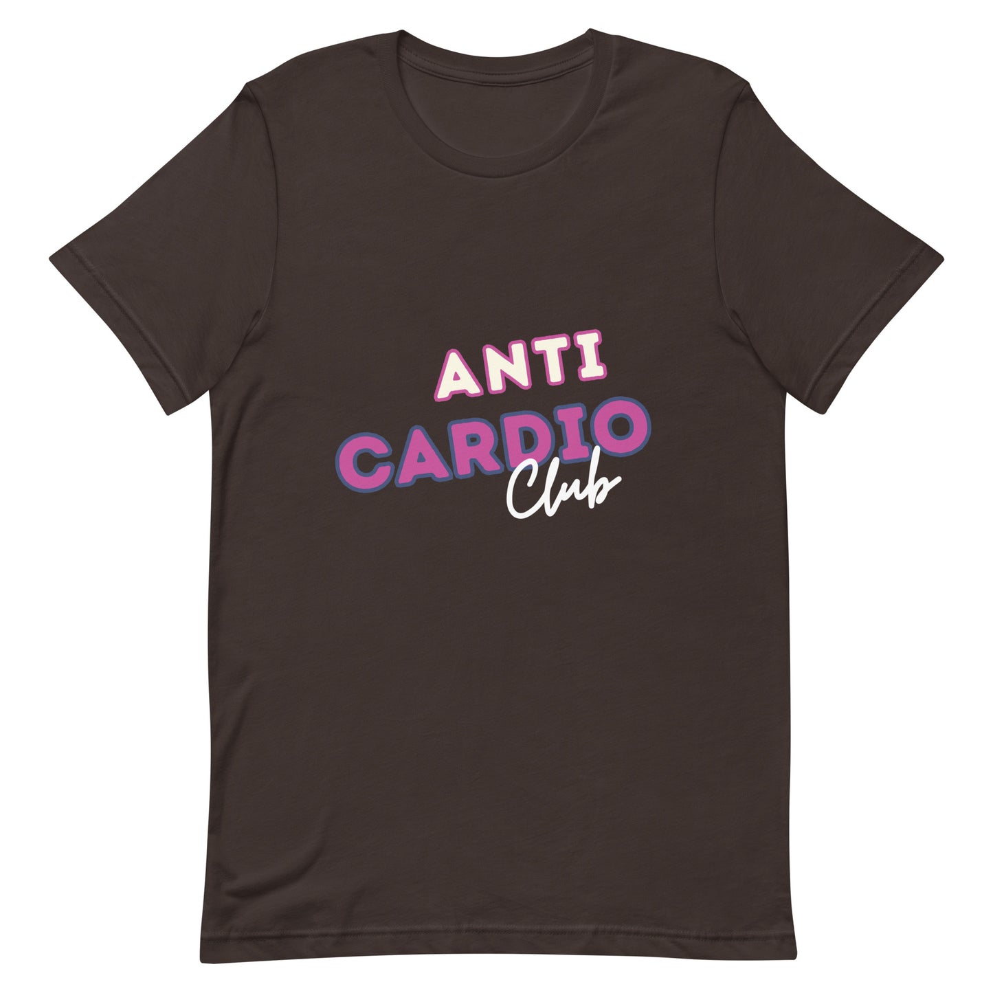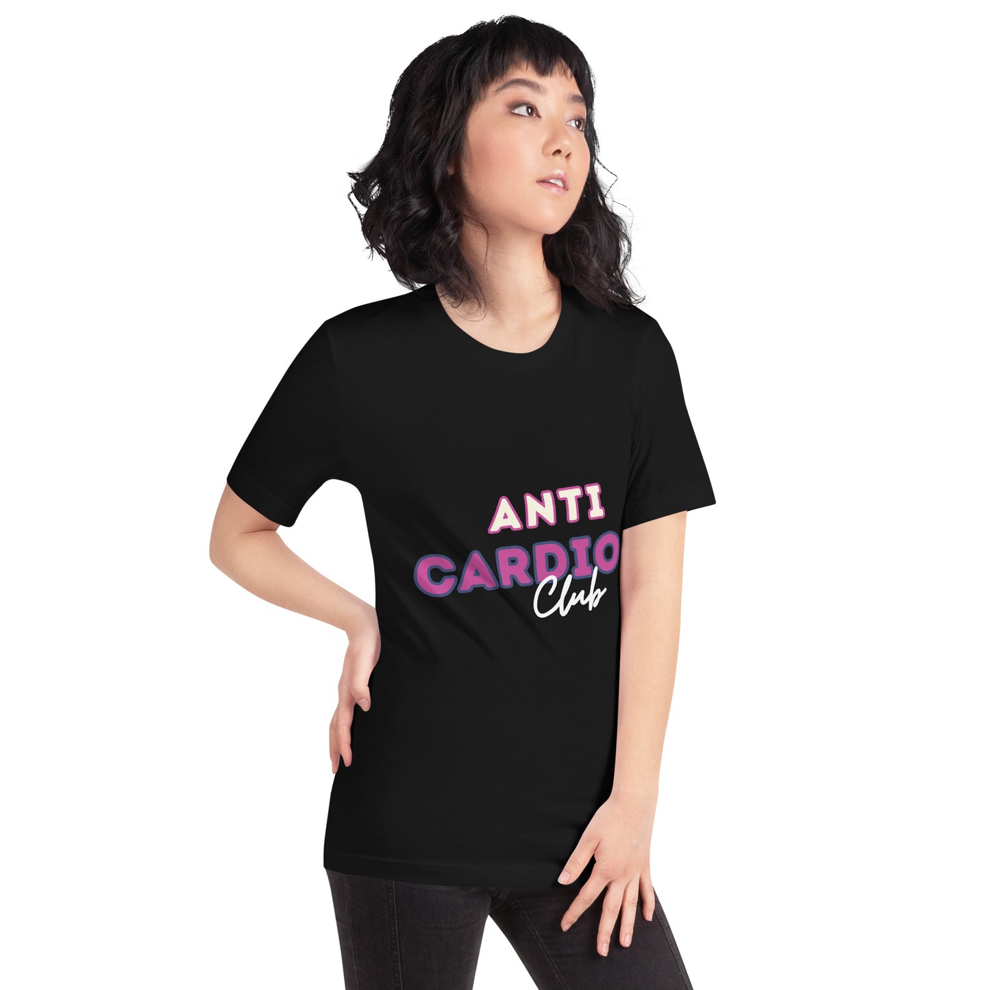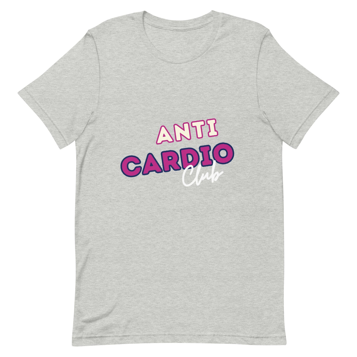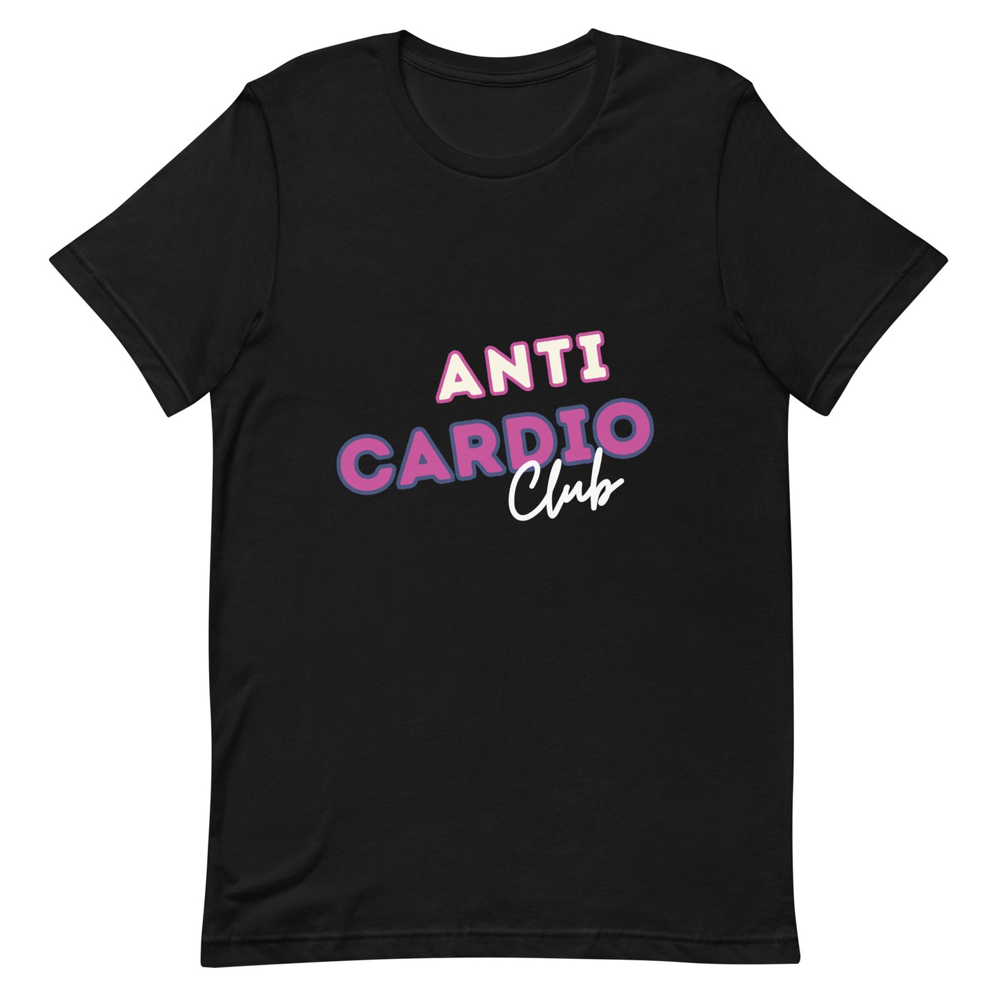 Join the "ANTI CARDIO CLUB" and let your t-shirt do the talking for you. Embrace your unique fitness journey and have a little fun while you're at it.