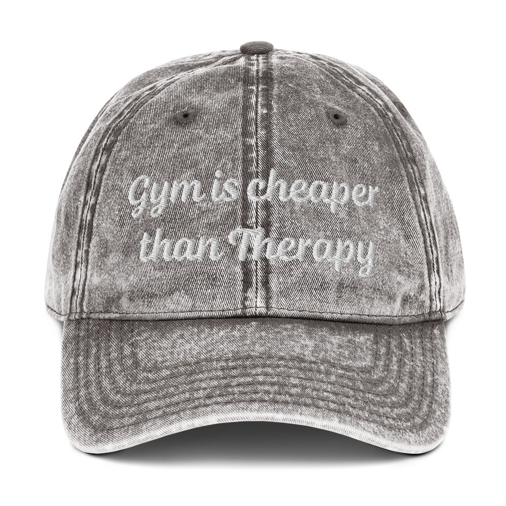 Gym is Cheaper Than Therapy Vintage Hat